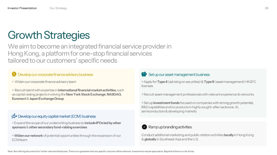 和新加坡,公司持有香港证监会的1号(证券交易)、6号(就企业融资提供咨询)牌照。