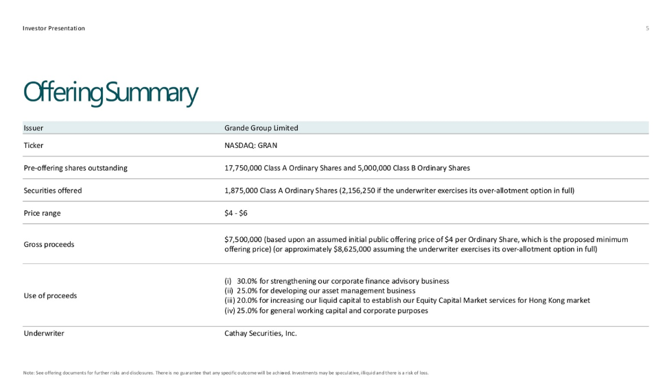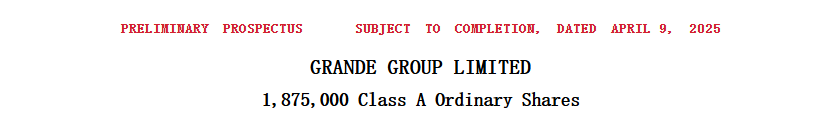 2025年4月29日,来自香港的券商Grande Capital Limited均富融资有限公司的控股公司Grande Group Limited(以下简称“均富融资”)在美国证券交易委员会(SEC)更新招股书,拟于美国纳斯达克上市,股票代码GRAN。其于2024年7月24日在SEC秘密递表,后于2024年12月10日公开披露招股书。均富融资招股书链接:
