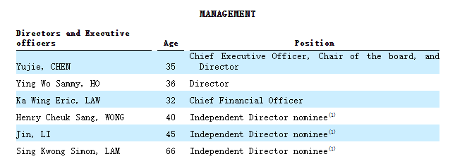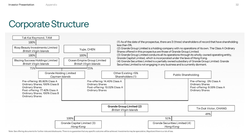 Grande Holding Limited,由Tak Kai Raymond TAM先生间接持股75%,Yujie CHEN女士间接持股25%。
