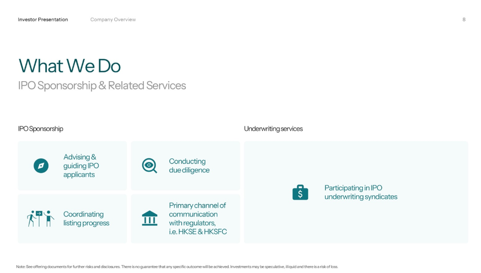 - 合规咨询服务:主要包括为香港上市公司提供上市后合规事宜的咨询服务,并按月收取费用。